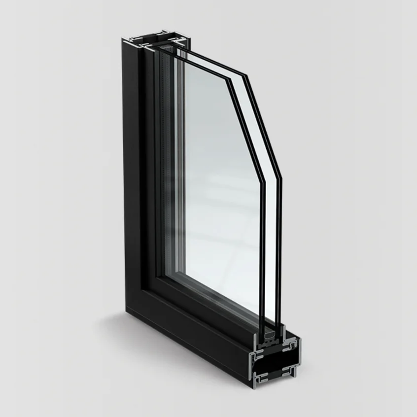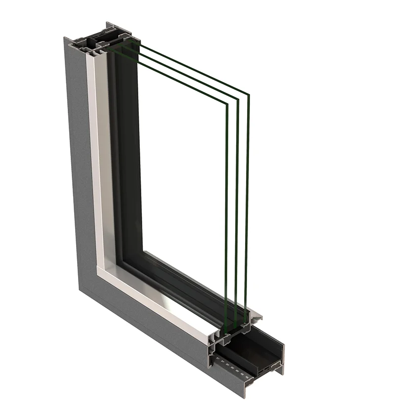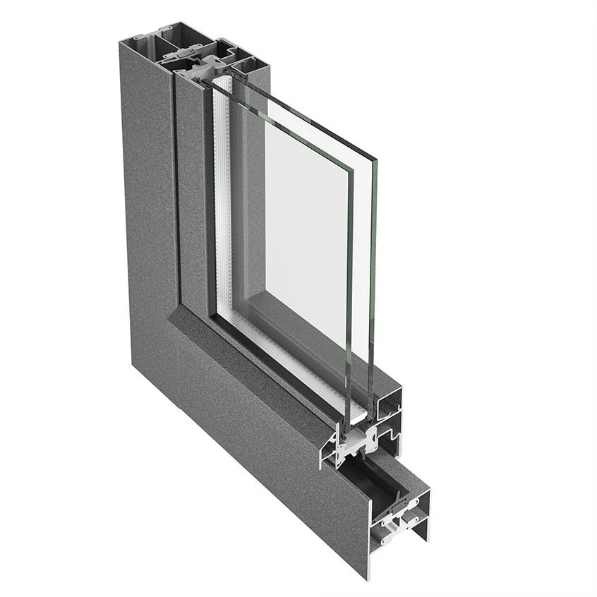 Offers superior thermal insulation. It is structured with flush and overlapping designs – with polyamide insulating core and a profile designed to be able to fit a variety of insulating glass.